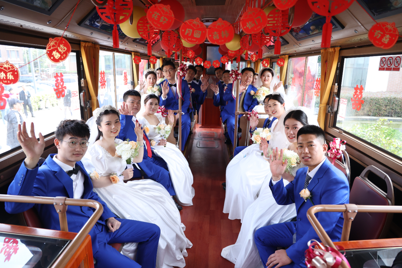 这是一场爱的见证,也是一份爱的告白!上午10:28,集体婚礼在欢快的青岛原创歌曲《爱情绽放》中拉开帷幕,在现场来宾的见证下,新人们一起欣赏爱情纪录片《携手创造幸福》,交换爱情信物,发表幸福感言,许下相伴一生的誓言。“全国劳动模范”“改革先锋”,中华全国总工会原兼职副主席许振超为新人证婚,与会嘉宾为新人们赠送了崂山印社篆刻家们精心篆刻的“心心相印”专属印章,全国交通行业技术能手、山东省技术能手,山东港口集团青岛港大港公司的王金良,带来他的“绝活”——叉车开啤酒,他先后开启6瓶啤酒,寓意家庭事业六六顺,生活美满节节高,以劳动创意秀的形式为新人们献上祝福。集体婚礼在歌伴舞《早安中国》中圆满礼成。