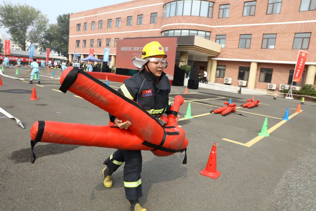 本次大赛由城阳区总工会、城阳区应急管理局联合主办,青岛亿和海丽安防科技有限公司承办。经层层选拔,来自全区34家企业的120名选手进入决赛。决赛分理论考试和实际操作两个部分,实际操作设置了火场救援、火灾自救和医疗急救3个比赛项目,包括消防水带的铺设和连接、灭火、佩戴防毒面罩、搬运假人、暗黑逃生、心肺复苏及AED使用等科目。