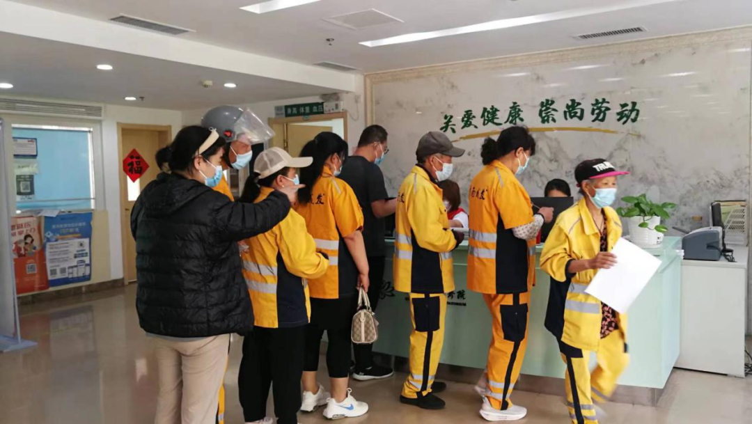 为深入开展学习贯彻习近平新时代中国特色社会主义思想主题教育,认真贯彻落实习近平总书记关于工人阶级和工会工作的重要论述,切实维护新就业形态劳动者权益,根据市总工会工作安排,湛山疗养院于6月13日起为青岛市城市管理局600名一线环卫工人进行为期6天的免费健康体检。