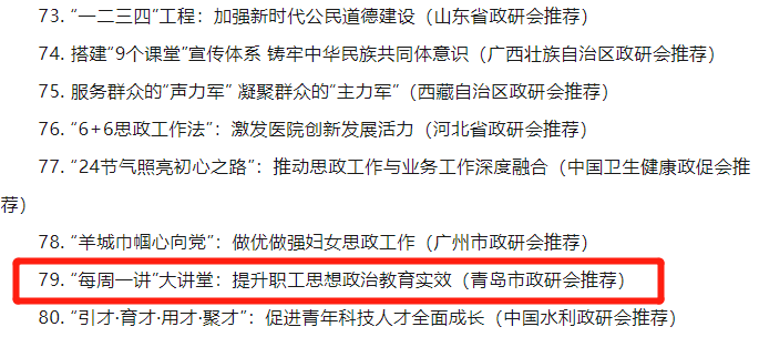 近日,中国政研会公布了《2023年度基层思想政治工作优秀案例》评选结果,由青岛市政研会推荐的、市总工会打造的《“每周一讲”大讲堂:提升职工思想政治教育实效》成功入选。这是2023年度青岛市唯一入选案例。