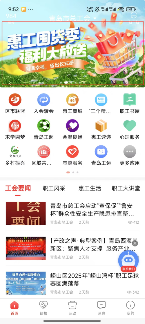 1. 打开“齐鲁工惠”APP,点击或首页活动轮播图;